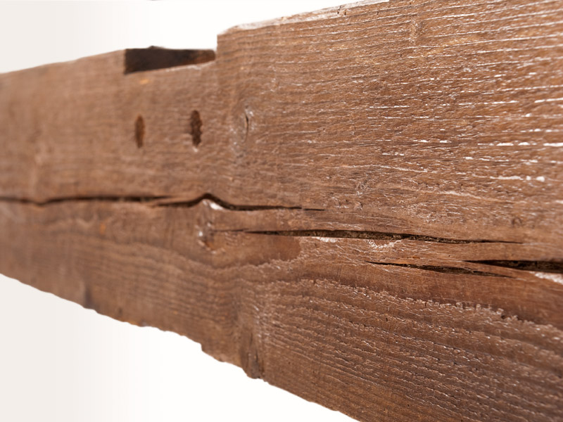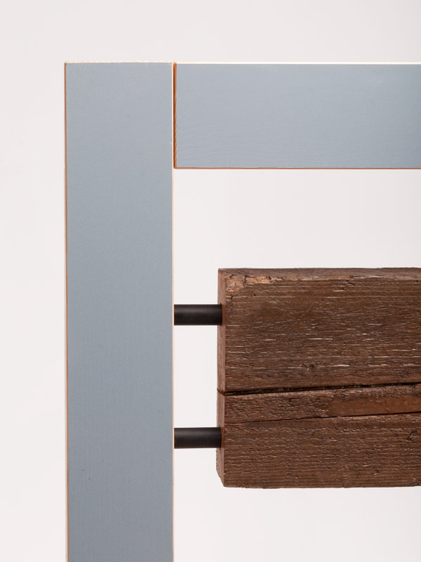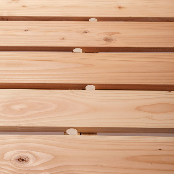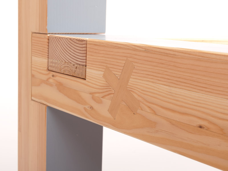 This large floating bed is constructed from a reclaimed glulam beam. It is surprisingly easy to assemble, with woodworking joinery connecting the frame.